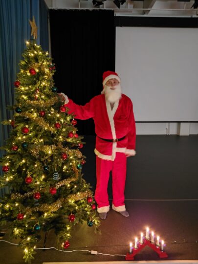 I mål erbjöds deltagarpris, varm risgrynsgröt, glögg och pepparkakor. I väntan på att alla skulle hitta i mål så kunde man klippa pappers snöflingor, färglägga julbilder eller bygga pappersflygplan. Då alla tagit sig tillbaka till skolan och fått kläderna bytta, så spelades Päivis kluriga kahoot tätt följt av prisutdelningen. Den snabbaste från båda banorna och kahootens vinnare belönades med en kakaomix respektive Elovena kex. Ytterligare delades ett tröstepris ut till tomten som inte riktigt kunnat svara rätt och tillräckligt snabbt på frågorna i kahooten.